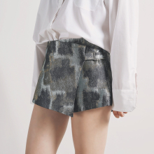 YELLOWQUEEN独立设计 春季和风提花时装料不对称细节短裤 金属色