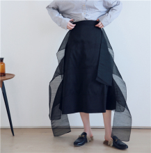 YELLOWQUEEN独立设计 SAMURAI系 进口缎面麻纱拼接飘纱半身裙
