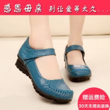 妈妈鞋女单鞋中老年女鞋真皮软底防滑坡跟平底大码圆头舒适休闲鞋