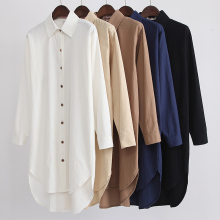 2016春装新款BF风全棉长袖衬衣大码宽松显瘦中长款衬衫裙女外套潮