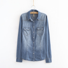 WWMM春秋新款韩版显瘦上衣水洗薄款打底牛仔衬衫女休闲长袖衬衣潮