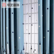 华艺定制 星星蓝色儿童环保简约儿童房窗帘布特价清仓卧室