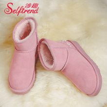 涉趣磨砂牛皮甜美性感雪地靴花朵圆头厚底2016冬季短靴子女鞋棉鞋