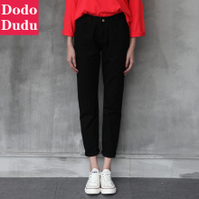 2017春季新品韩版直筒显瘦哈伦黑色牛仔裤女小脚裤宽松学生九分裤