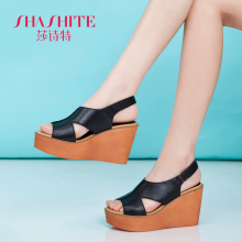 莎诗特2016新款坡跟凉鞋女夏厚底防水台鱼嘴鞋T型镂空罗马高跟鞋