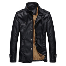 度堡罗秋冬季男士皮衣加绒加厚立领修身 PU皮夹克青年休闲外套 潮
