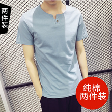 【2件装】夏季短袖T恤男士修身V领上衣服男装韩版纯棉半袖打底衫