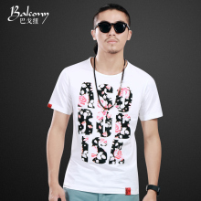 巴戈纽夏季男士短袖T恤圆领修身上衣服半袖体恤个性男装印花潮牌