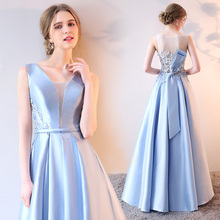 主持人晚会礼服毕业聚会晚礼服长款学生女优雅公主裙2017新款缎面