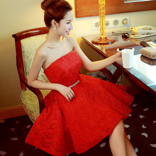 抹胸婚纱礼服新款2017夏季红色婚礼新娘结婚敬酒服短款晚礼服长款