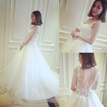 2017新款时尚婚纱礼服拖尾长袖复古蕾丝显瘦新娘婚纱修身蓬蓬裙女