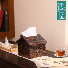 家用创意实木质纸巾盒 客厅圆形卷纸纸巾筒 复古餐厅长方形抽纸盒