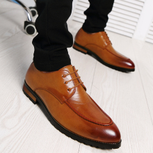 英伦风潮流男士休闲皮鞋夜店发型师尖头小皮鞋系带商务正装男鞋子