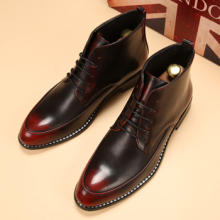 冬季保暖男士休闲高帮皮鞋加绒棉短靴英伦尖头男靴潮发型师马丁靴
