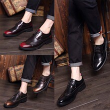 英伦潮流雕花男士休闲皮鞋布洛克厚底男鞋子夜店发型师尖头小皮鞋