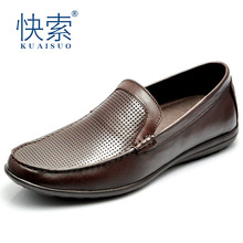 快索秋季透气男士商务休闲鞋真皮套脚驾车鞋牛皮鞋子夏季豆豆男鞋