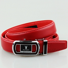 花花公子 女士皮带 牛皮革 女款自动扣裤腰带新款女生红色送礼盒