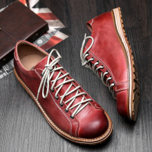 班比帝伦圆头真皮流行男鞋系带工装鞋英伦复古平底休闲鞋潮男单鞋
