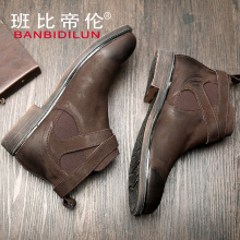 班比帝伦秋冬季切尔西皮靴英伦牛仔靴复古男鞋短靴潮真皮马丁靴男