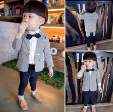 男童春秋季新款童装儿童中小童格子西装两件套宝宝西服礼服套装潮