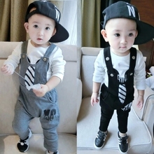 童装2016男童春秋装新款背带裤儿童中小童针织领带长裤子宝宝韩版