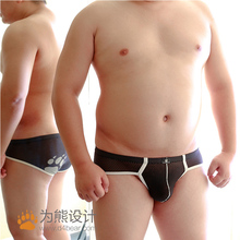 为熊设计胖熊性感真人实拍露毛透明男士U凸大码熊爪平角四角内裤
