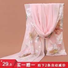 羚羊早安 秋冬季百搭雪纺丝巾女韩版印花拼接披肩提花丝巾围巾