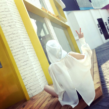 夏装新款韩版连帽防晒衣女长袖薄时尚宽松露肩开叉套头卫衣外套潮
