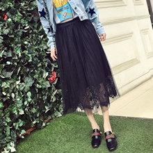 2017春新款女装韩版中长款性感蕾丝透视网纱半身裙松紧腰网纱裙潮