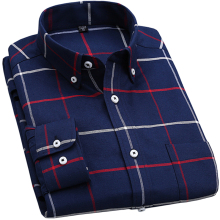 春秋条纹格子牛津纺衬衫男长袖修身免烫纯色休闲青年长袖衬衣男装