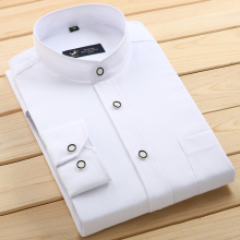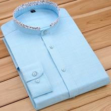 纯棉中国风中华立领衬衫男长袖丝光棉圆领衬衣休闲免烫全棉衬衫男