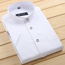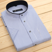 夏季薄款中华立领衬衫男短袖商务休闲小领短袖衬衣免烫圆领衬衫男