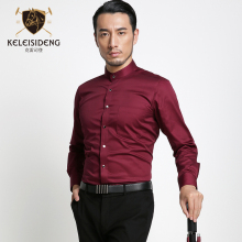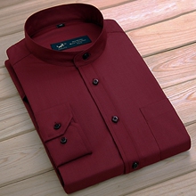 枣红立领衬衫男长袖 中国风休闲衬衫 免烫中华圆领青年长袖衬衣男