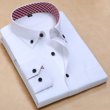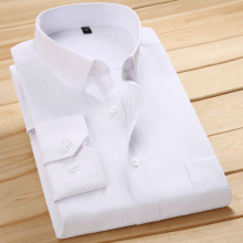 春季商务男士长袖衬衫工作服白色休闲衬衣修身工装寸衫加大码男装