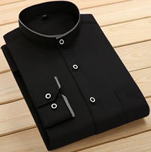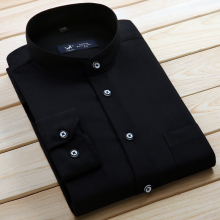 黑色中华立领衬衫男士商务休闲小领衬衣免烫圆领长袖衬衫男春夏装