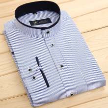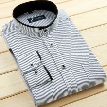 春夏季中华立领衬衫男士长袖免烫条纹商务休闲圆领衬衣中国风男装