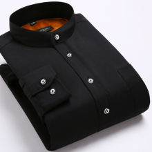 男士冬季加绒衬衫 中华立领保暖衬衫男加绒加厚 长袖衬衣圆领衬衣