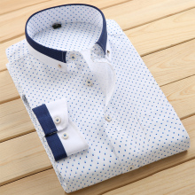 春秋季新款时尚商务休闲男士长袖衬衫修身免烫钻扣领长袖衬衣男装
