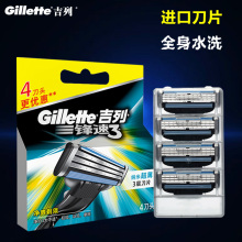 吉列锋速3刀片手动剃须刀老式剃须刀片刮胡刀头4个三层无刀架正品