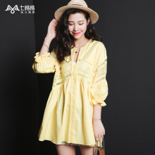 七格格2016秋季灯笼袖性感透视七分袖蕾丝衫宽松上衣女人6MI1006X