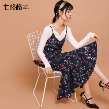 七格格夏装2017新款碎花不规则荷叶边吊带连衣裙女中长款显瘦甜美
