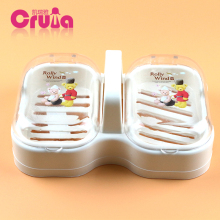 韩国进口创意手提 可爱卡通熊香皂盒带盖 带沥水肥皂盒 大号双格