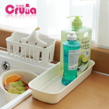 进口韩国厨房收纳筐 百洁布收纳盒抹布架 清洁用品整理筐 带沥水