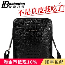 波斯丹顿鳄鱼纹真皮包男士单肩包商务包包牛皮男包真皮斜挎包包潮