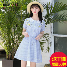 初高中学生连衣裙女夏季2017夏装新款韩版少女小清新条纹衬衫裙子