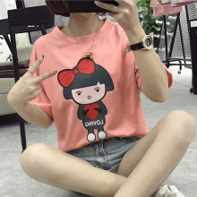 短袖T恤女2017夏季新款学院风卡通盟印花宽松大码上衣百搭学生装