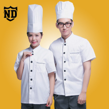 白色加肥加大男食堂新款厨师服厨房厨师长工作服男短袖衣服夏透气