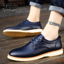 牧邮男鞋夏季2017新款商务英伦男士休闲皮鞋透气潮鞋子百搭皮鞋男