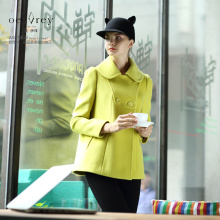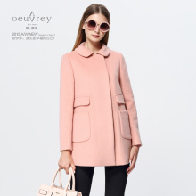 欧伊洋春装新款羊毛呢子大衣女西装领双排扣毛呢外套WD4D8145
