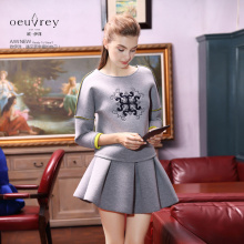 欧伊洋秋冬新款百褶半裙摆空气层太空棉休闲两件套装WD4T2194